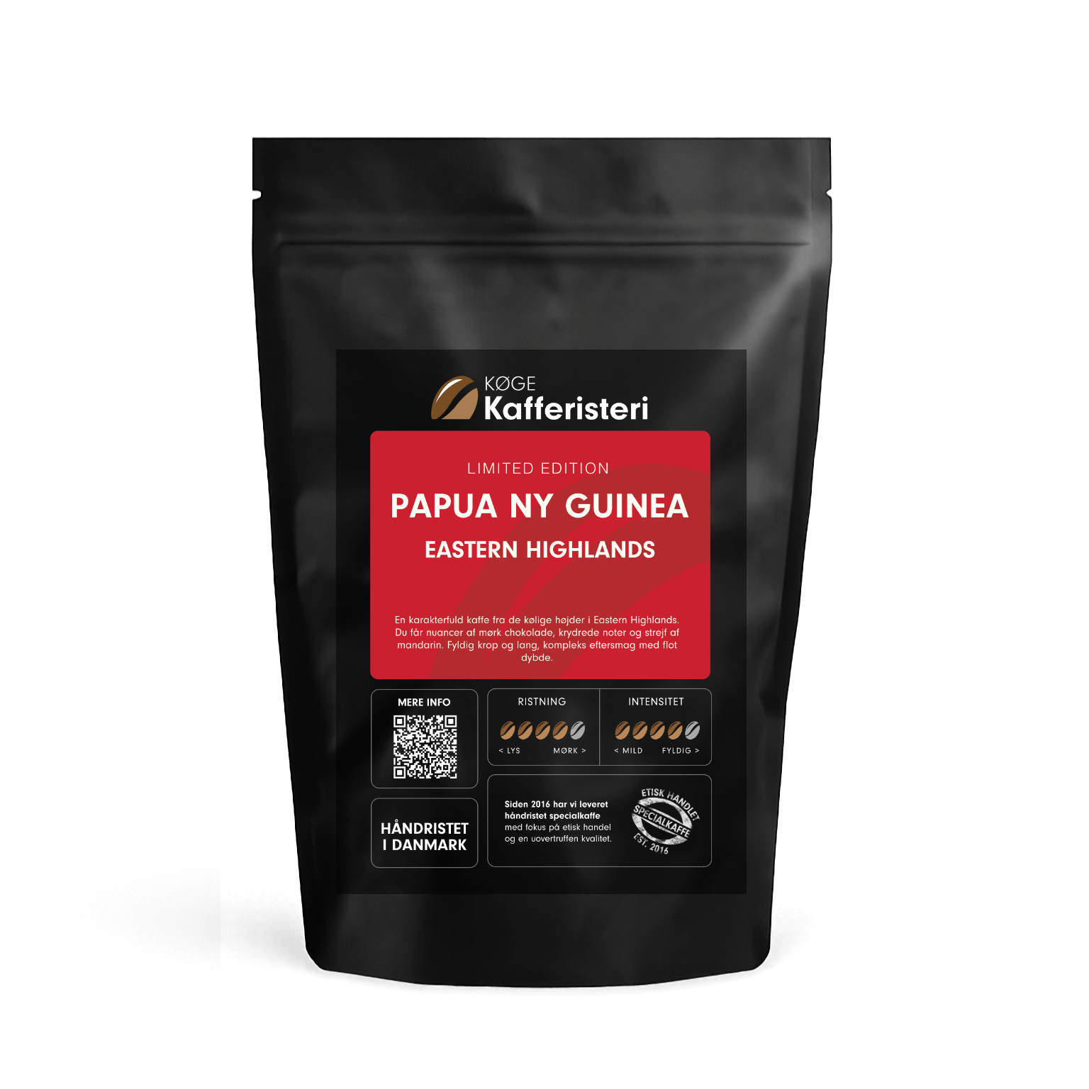 Oplev kaffen fra Papua Ny Guineas højtliggende Eastern Highlands, hvor småbønder dyrker Arabica på traditionelle “coffee gardens”. Højt, køligt klima og bæredygtige dyrkningsmetoder giver en kompleks, livlig kop med frugtige og krydrede nuancer, afrundet sødme og fyldig krop.